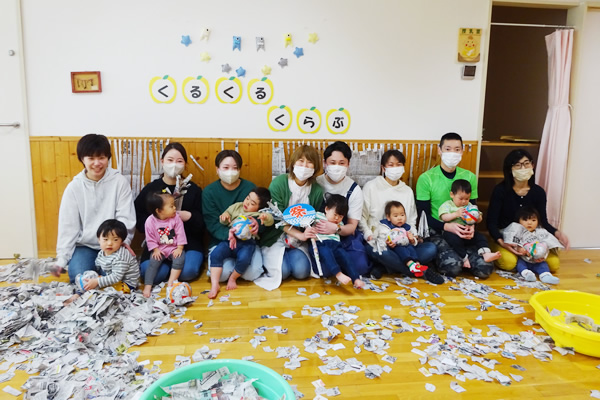毎月1回、土曜日の午前中 春・夏・秋・冬、季節ならではの遊びを親子で楽しみます。 ※お父さん、祖父母の参加大歓迎です。
